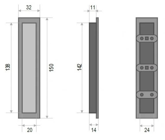 Tupai 1097Z – дверна ручка, призначена для установки на розсувні міжкімнатні двері товщиною від 30 мм. Розміри – 150х32 мм.