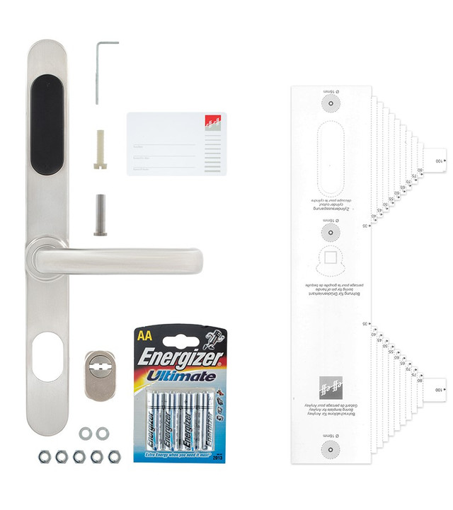 Автономна захисна фурнітура з інтегрованим контролем доступу AnyKey поєднує в собі вузькопрофільний дизайн і надзвичайно високу міцність і рівень захисту. Зовнішню планку виконаний з цілісного масиву нержавіючої сталі товщиною 15 мм