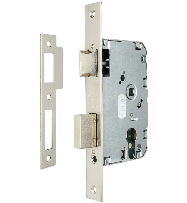Tesa 2010P - основний замок врізний під циліндр DIN, призначений для дерев'яних або металевих дверей. Використовується тільки з фурнітурою на роздільному щитку, так як має нестандартну міжосьову відстань - 47 мм