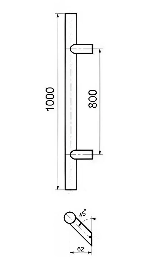 Внутрішня дверна ручка-скоба Zenk Metal Manyas Ø 30 800/1000 45 неіржавка сталь