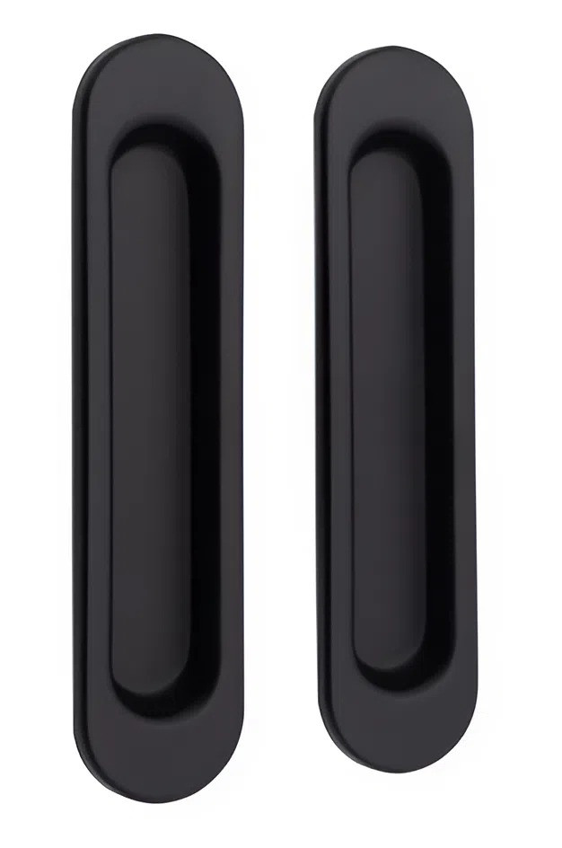 Ручка для розсувних дверей овальна, KEDR BLACK MAT, чорна (пара)