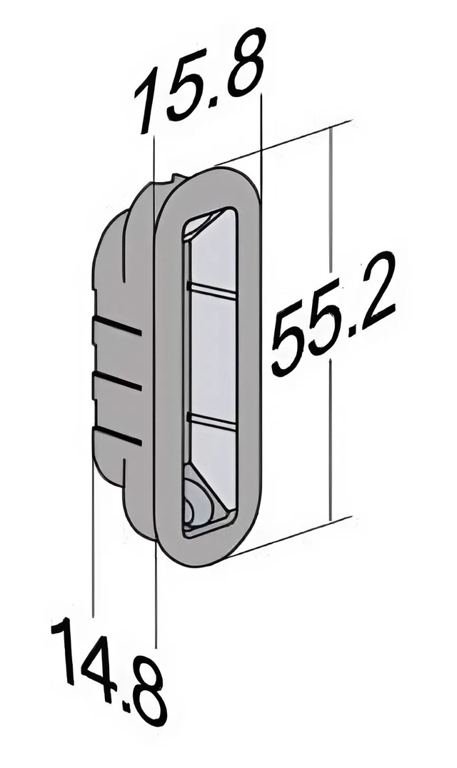 Розміри: висота: 55,2 мм; ширина: 15,7 мм; глибина врізки: 15,7 мм.