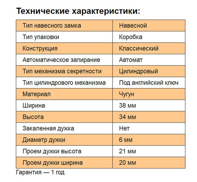 Замок відрізняється високою якістю виготовлення і має покриття з порошковим фарбуванням. У комплекті поставляється 3 ключа.