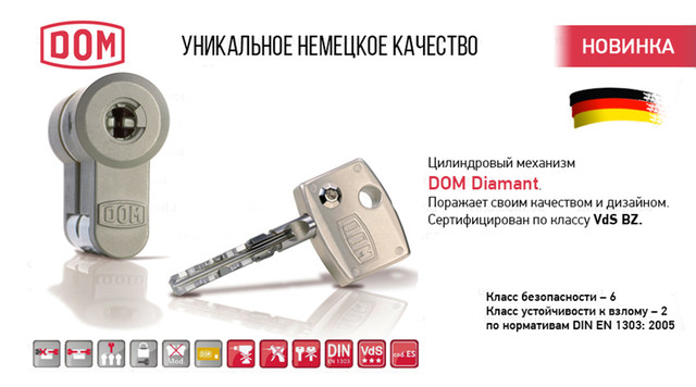 Циліндрові механізми DOM Diamant високого ступеня безпеки для всіх, хто дбає про власну безпеку, безпеку власного майна і безпеки своїх близьких.