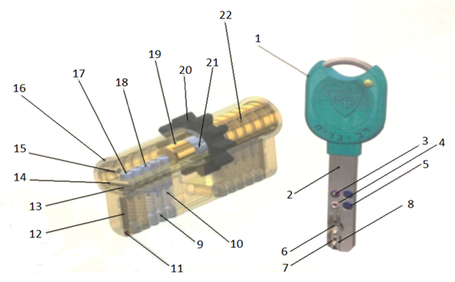 - У штифтах замків Locxis використовуються один або два ряди зовнішніх штифтів, внутрішні штифти, пружини і кульки з нержавіючої сталі, що дозволяє реалізувати широкий діапазон можливих комбінацій для забезпечення найвищого рівня захисту замку.