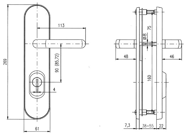 Фурнітура захисна ROSTEX R4 UNIVERSAL до основних замків для вхідних металевих, дерев'яних та профільних дверей товщиною 38-55 мм з можливістю продовження до 100 мм (комплекти подовження замовляються окремо). З-й клас безпеки. Матеріал: нержавіюча сталь. Плата, що захищає корпус замка. Загартований протектор циліндра із захистом від висвердлювання. Кріплення - болти М8. Збільшена відстань між болтами кріплення.