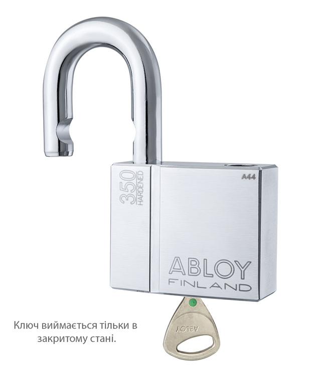 Навісний замок підвищеної надійності ABLOY PL 350 із загартованої сталі (5 клас). Застосовується для забезпечення максимальної безпеки. Можна застосовувати для закривання контейнерів, гаражів, товарних вагонів поїздів та поїздів.